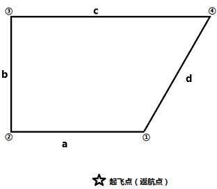 航线要求: (一)任务航线为直角梯形。 (二)a、b 航线长 50 米,c、d 长度不做要求,水平速度 5 m/s,转弯模式为停止转弯,各点停留7 秒。 (三)航线不循环,①点开始执行。