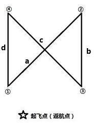 航线要求: (一)按图形要求规划上图任务。 (二)b、d 航线长 50 米,a、c 航线相等(长度不做要求), 水平速度 7 m/s,转弯模式为停止转弯,各点停留 5 秒。 (三)航线循环,①点开始执行。